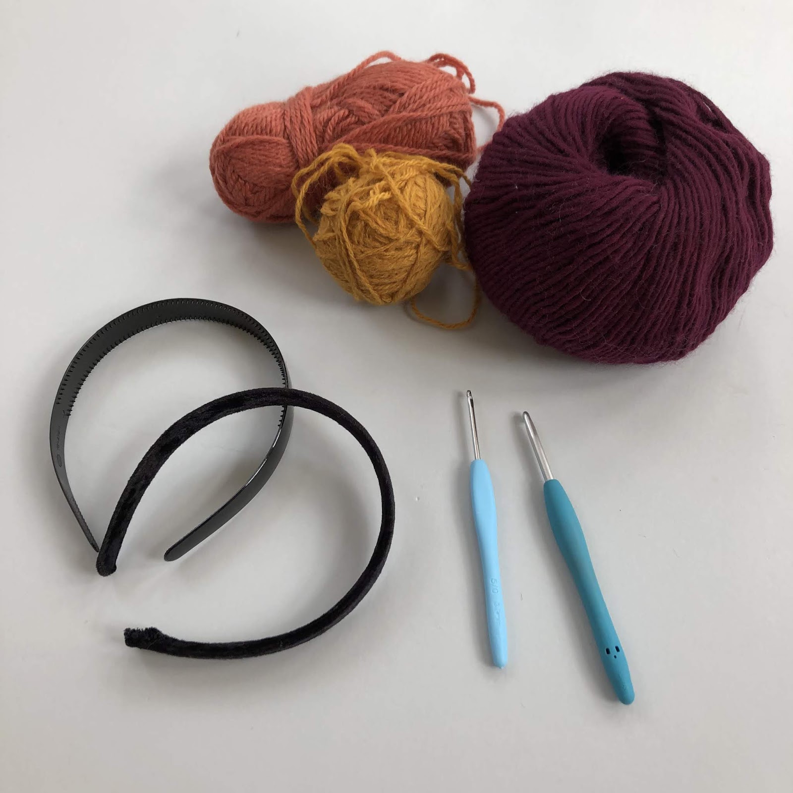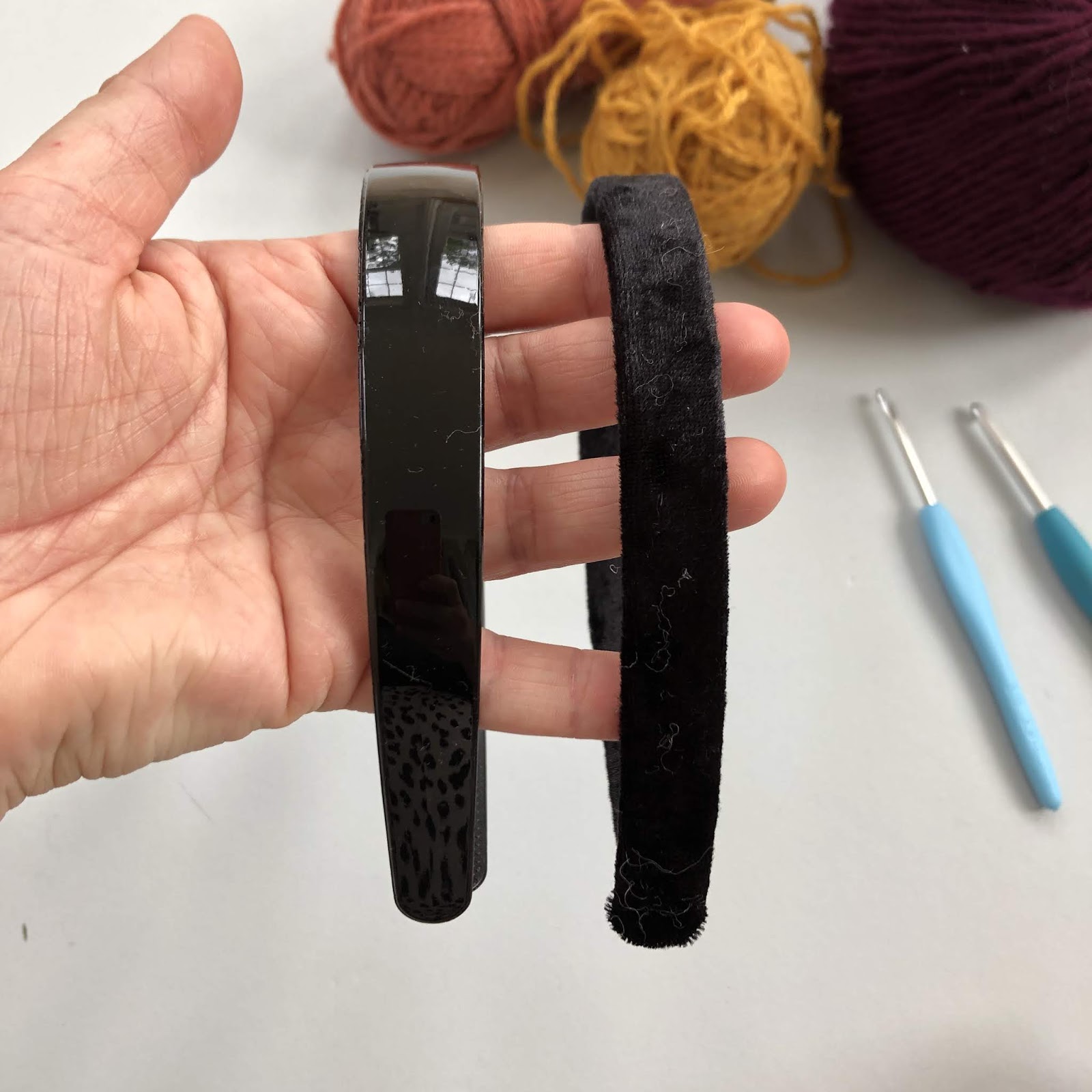 - A plain rigid plastic headband – TIP if your headband is the same width all the way around, this will be easier to cover.