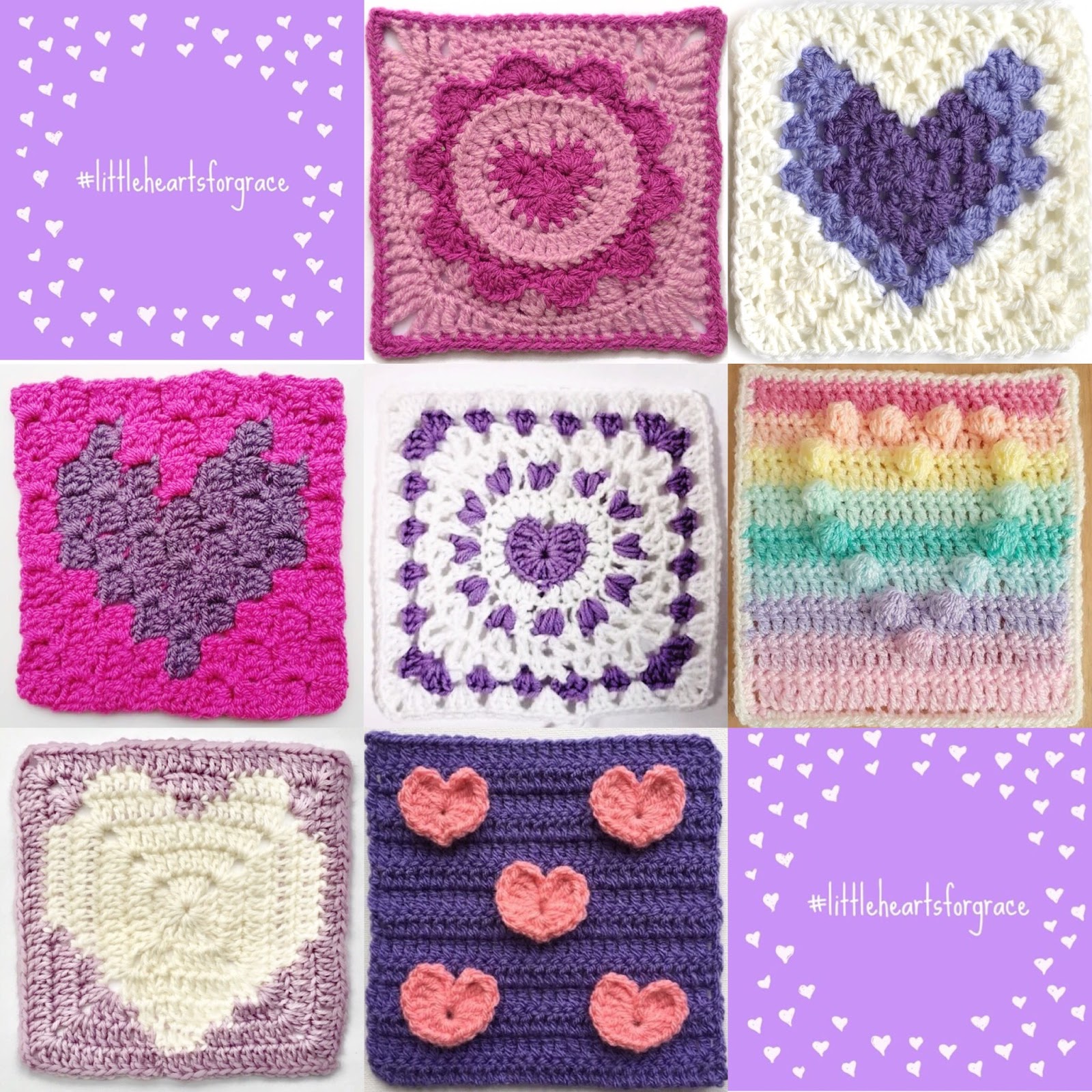 Please use the hashtag #littleheartsforgrace and follow the Instagram account @littleheartsforgrace for updates on the CAL and how the blanket is progressing. Myself, @lottieandalbert, and Jen, @justlittlejen, will also be sharing updates on our pages too.