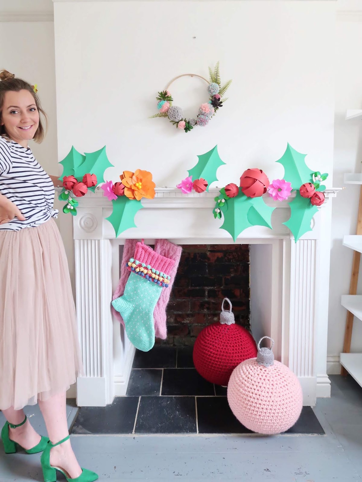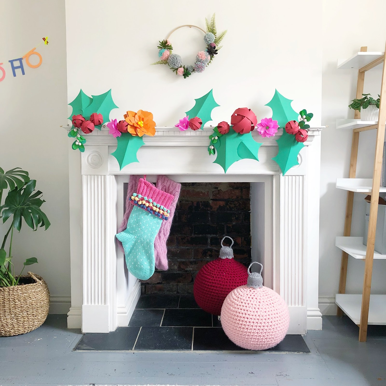 The collection includes two crochet project: a waistcoat stitch stocking and giant crochet baubles, plus a quick yarn pompom wreath and a paper garland. I loved making this collection, particularly as I got to play with paper and other crafts! I think the crochet baubles have to be my favourite though - particularly with their secret filling - can you guess what it is?