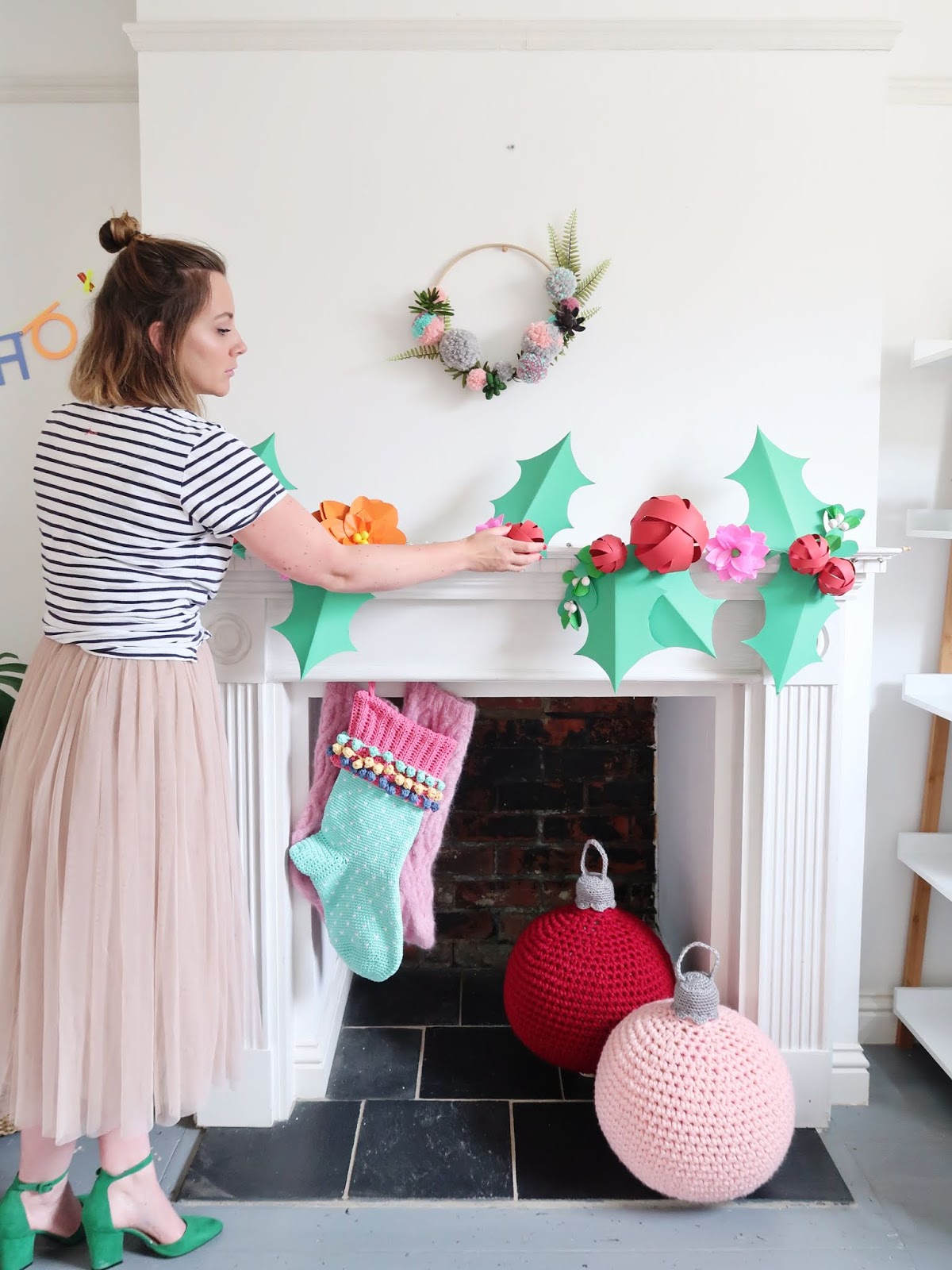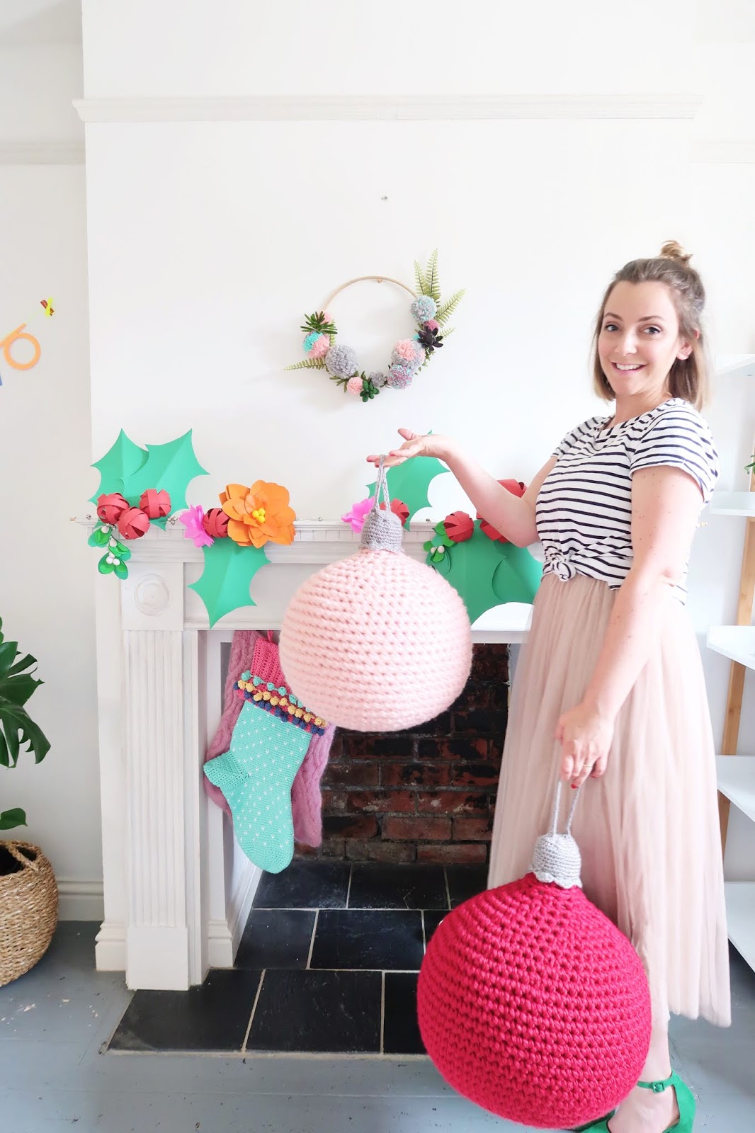 Free patterns for my crochet stocking, giant baubles, paper garland and pompom wreath