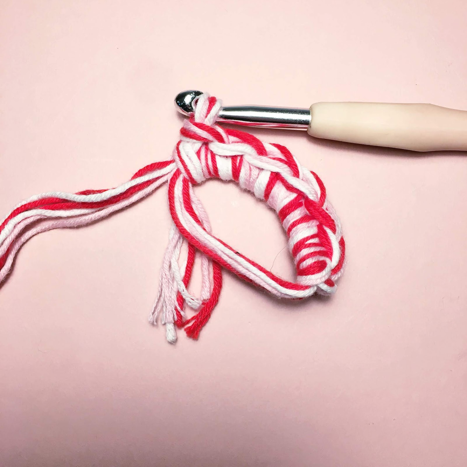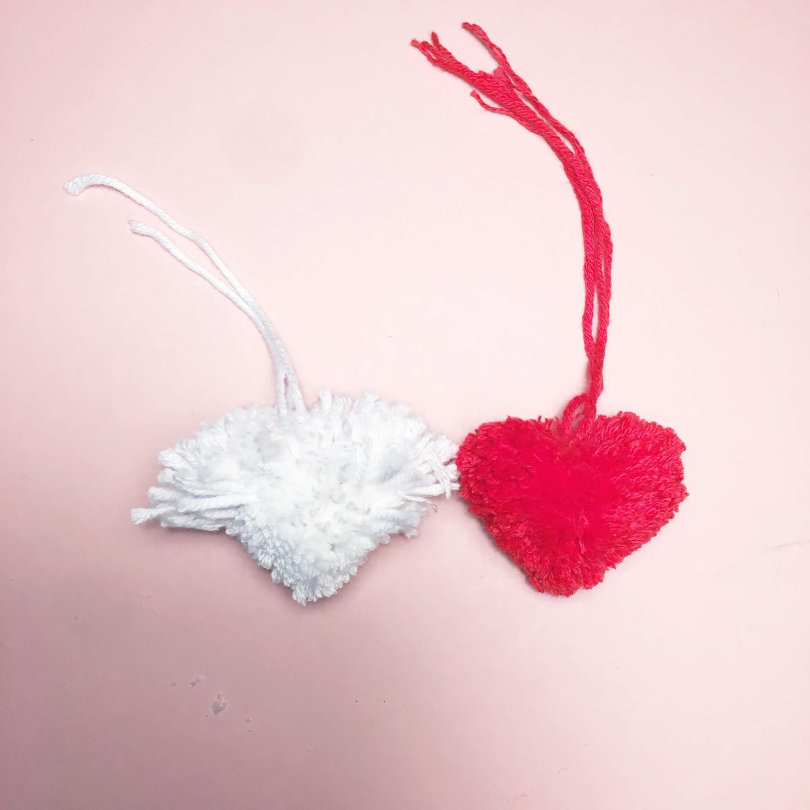To make the pompom hearts, use just one strand of yarn at once.