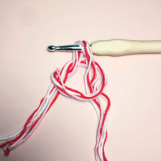 Work all six yarns together and treat them as one thread.