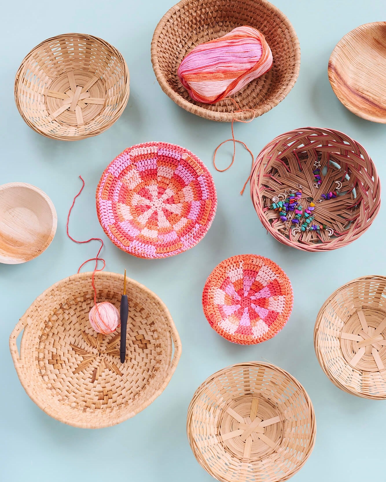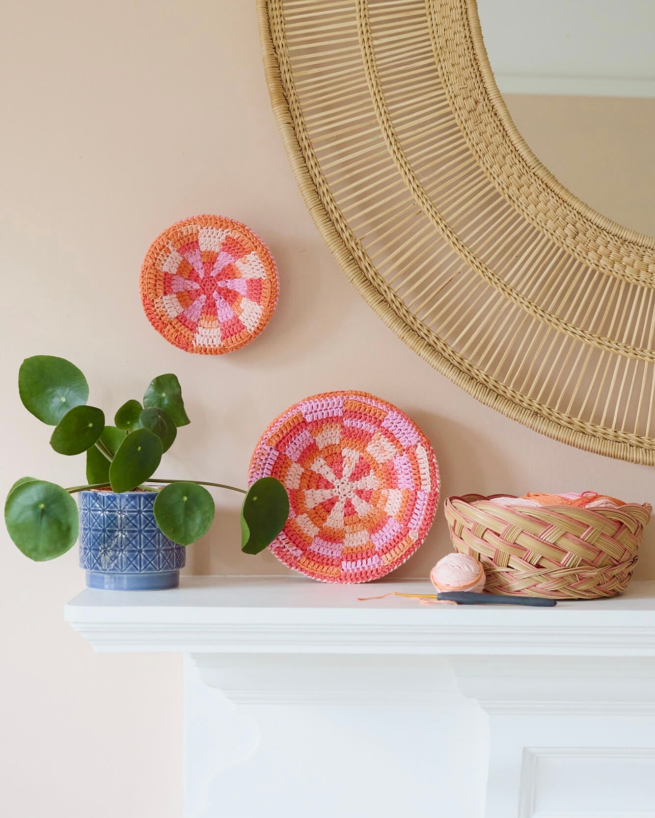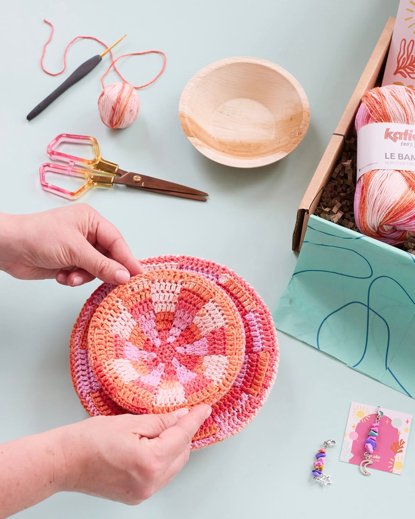 A joyful crochet kit inspired by the vibrance of Mexican interiors and the creative spirit of Frida Kahlo. This kit includes everything you need to make two nesting baskets, using bold colourwork and the satisfying structure of mosaic crochet.
